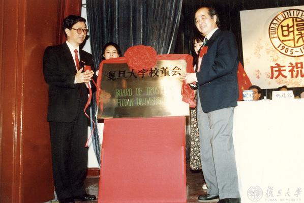 1995年5月杨福家与李政道共同为校董会揭牌