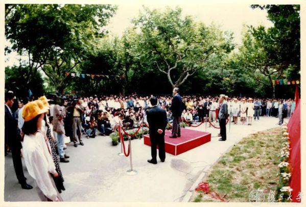 1995年,复旦大学九十周年校庆,新建成的校训墙前人头攒动。李先生作为揭幕者,作了题为“学与问”的学术报告,并担任复旦大学校董会第一届名誉主席,从此,他与复旦的感情更进一步。