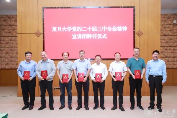9月3日下午,复旦大学举行党的二十届三中全会精神学习研讨会暨宣讲动员和集体备课会,成立党的二十届三中全会精神宣讲团。42位来自文社理工医各个学科的专家学者受聘为宣讲团成员,校党委书记裘新为宣讲团成员颁发聘书。校党委常委、宣传部部长、政策研究与改革办公室主任方明主持会议,介绍学校党的二十届三中全会精神宣讲团情况。