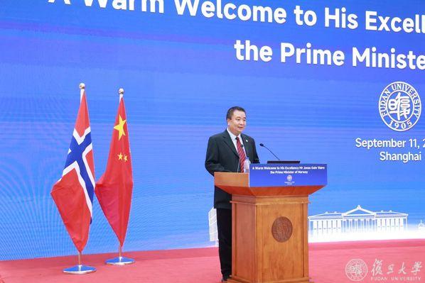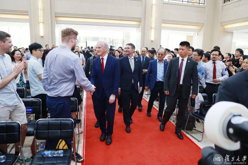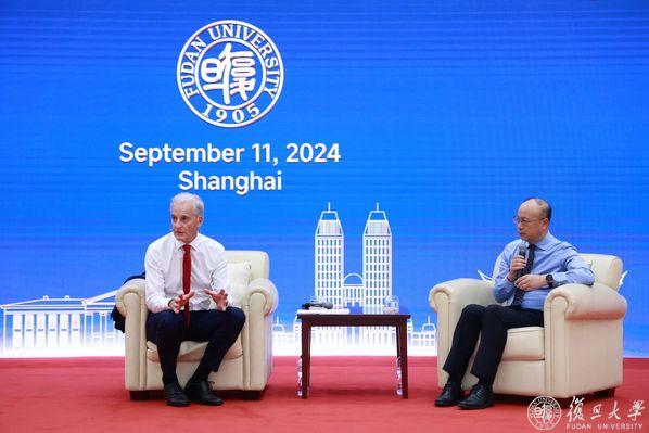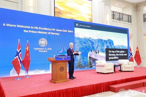 9月11日下午,挪威首相约纳斯·加尔·斯特勒(Jonas Gahr Støre)在复旦大学光华楼志和堂发表演讲,并与现场师生交流。