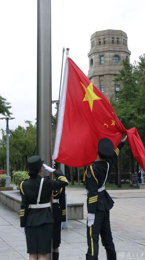 10月1日清晨,复旦四大校区举行升旗仪式庆祝新中国成立75周年。