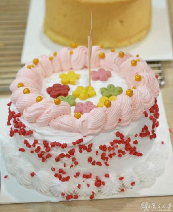 活动现场,同学们用各色奶油和缤纷彩糖在蛋糕上绘制出精美图案。