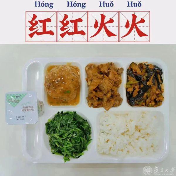 红红火火套餐 :10.1元,红烧狮子头+三杯鸡+肉末茄子+清炒菠菜+米饭+小酸奶