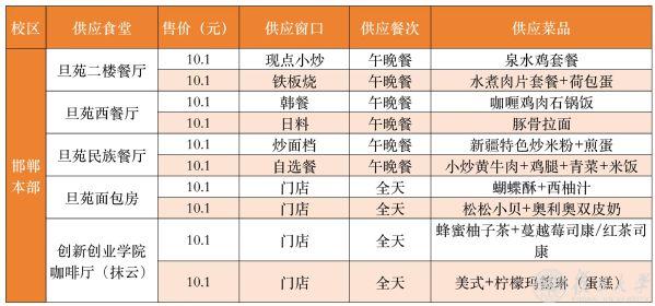 【邯郸校区】旦苑一楼餐厅、南区一楼餐厅、北区一楼西保障餐厅