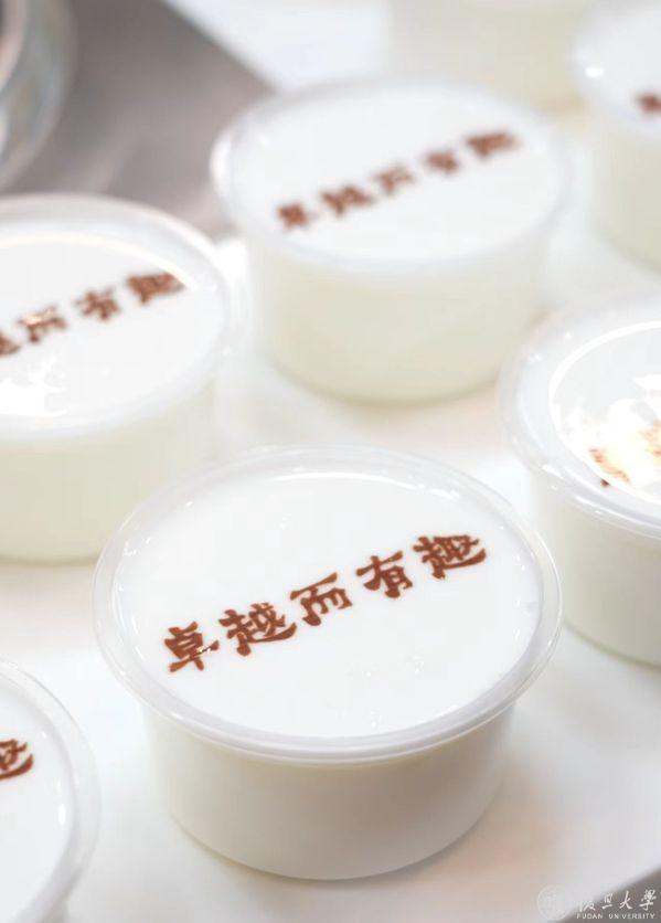 在酸奶刻字区,同学们将“卓越而有趣”等字样“刻画”在酸奶表面,展现学子对卓越的追求、对美好生活的向往。