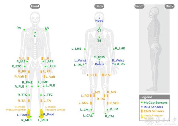 此外,理想的行走过程需要根据下肢姿态的运动结果对脊髓时空刺激参数进行实时优化调整,这就要求对步态进行实时监测。加福民团队采用红外动捕、肌电、惯性传感器、足底压力垫等多模态技术,构建健康步态以及多种异常步态数据集,建立算法模型,实现跨人群、跨模态、跨类型的连续步态轨迹高性能追踪,为脑脊接口技术奠定基础。