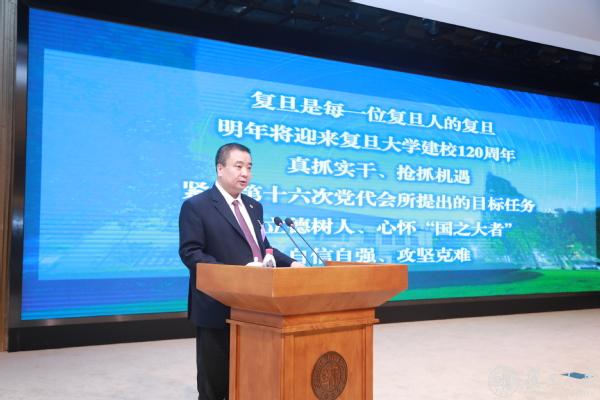 明年学校将迎来建校120周年。在迈上中国式现代化新征程的历史战略机遇期,要真抓实干,抢抓机遇,紧扣第十六次党代会所提出的目标任务,坚持立德树人、心怀“国之大者”,在建设教育强国中打头阵,在实现自主创新中当尖兵,为建成建好“第一个复旦”不懈奋斗。