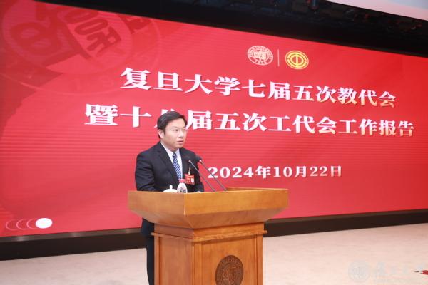 他表示,过去的一年多,是学校实现“十四五”规划目标任务的关键时期,学校坚持用习近平新时代中国特色社会主义思想凝心铸魂,加强对“第一个复旦”建设的引领谋划;实施“时代新人铸魂工程”复旦方案,筑牢思政工作“承重墙”;突出内涵质量,加快“双一流”建设,加快推进学校高质量发展;服务国家战略和区域经济社会发展,扩大高水平对外开放合作;坚持以师生为中心,为“第一个复旦”建设提供有力保障。