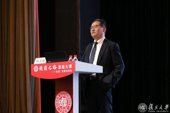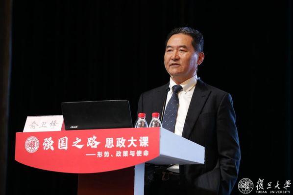10月22日下午,上海仲裁协会会长、上海市政协委员、复旦大学校友俞卫锋重返母校,走上相辉堂讲台,以《法行天下, 律引人生》为题,开讲“强国之路”思政大课。