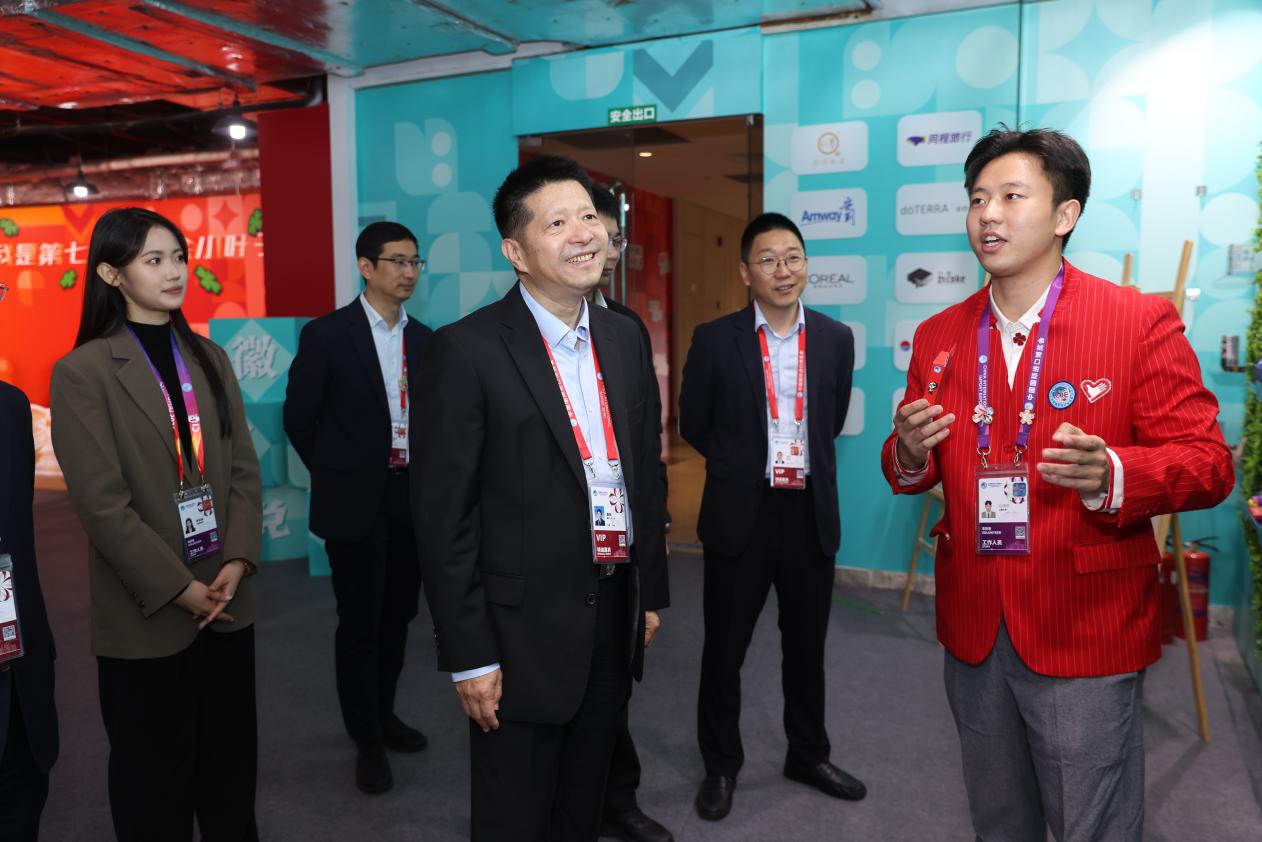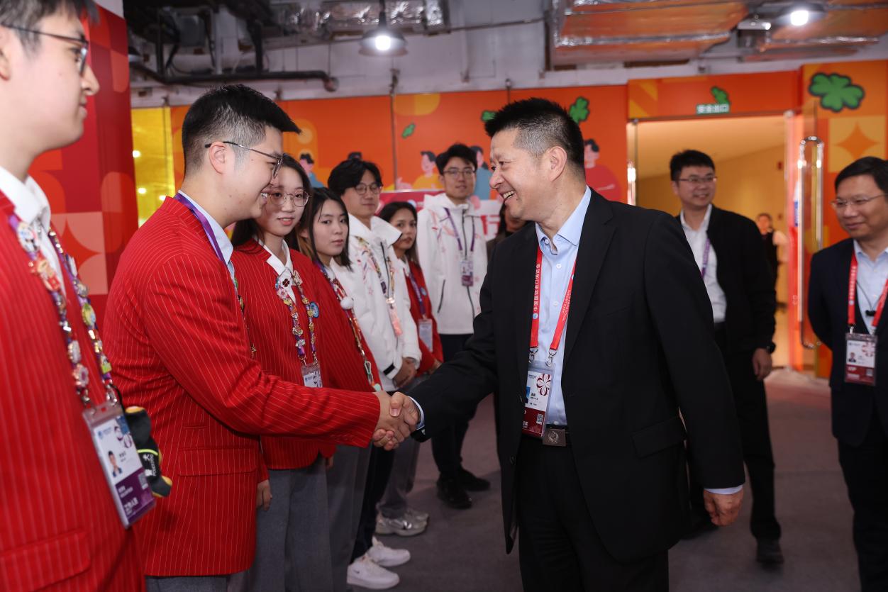 随后,裘新一行走访了进博会国家展内我校志愿者所在的部分服务点位,与志愿者们进行交流,询问上岗情况和服务感受,了解工作情况和个人体验,感谢志愿者们做出的贡献。