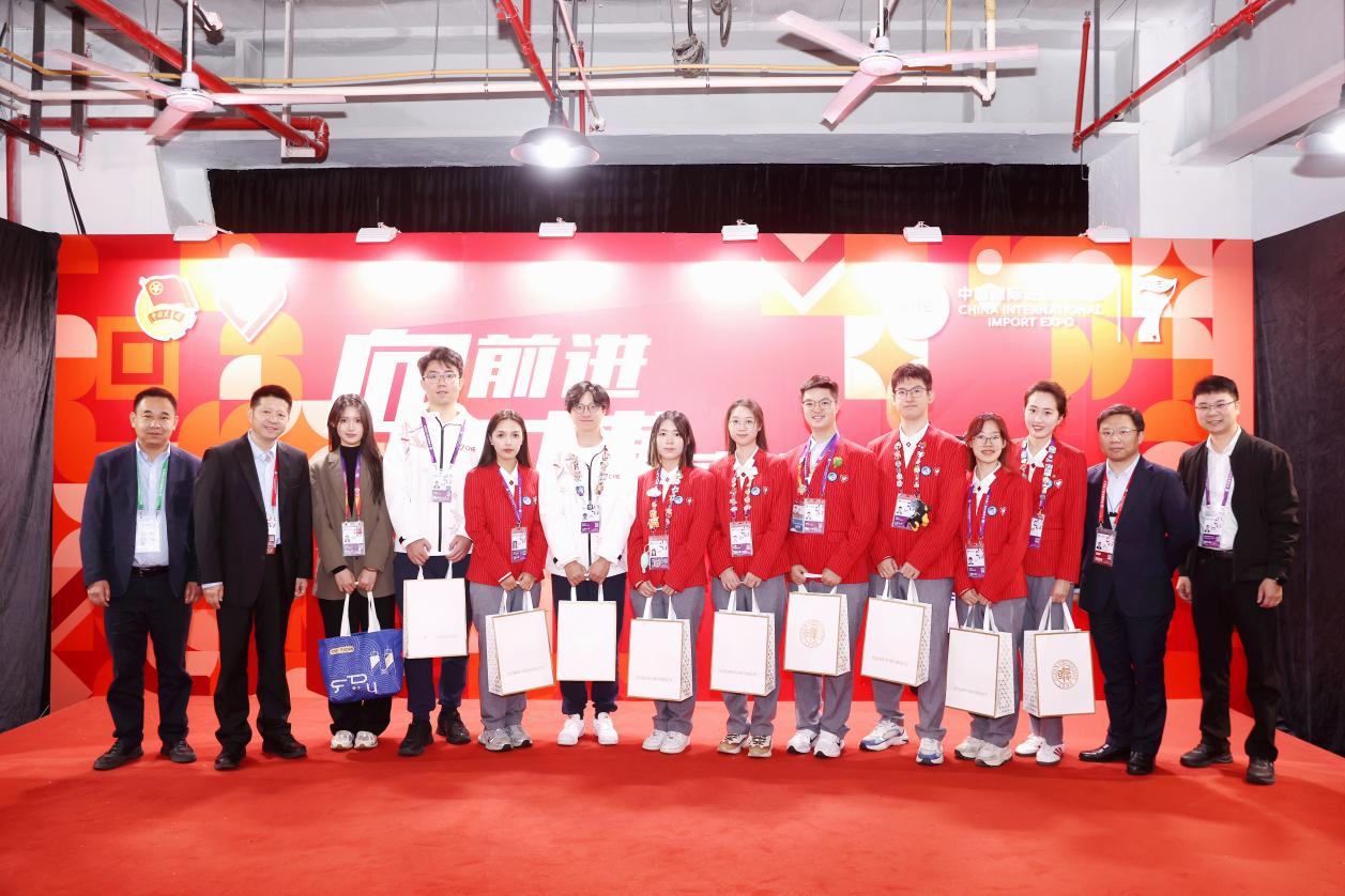 11月9日上午,复旦大学党委书记裘新一行赴国家会展中心慰问复旦大学第七届进博会志愿者。团市委副书记王江、团市委挂职副书记唐志宇和学校相关部门负责人陪同。