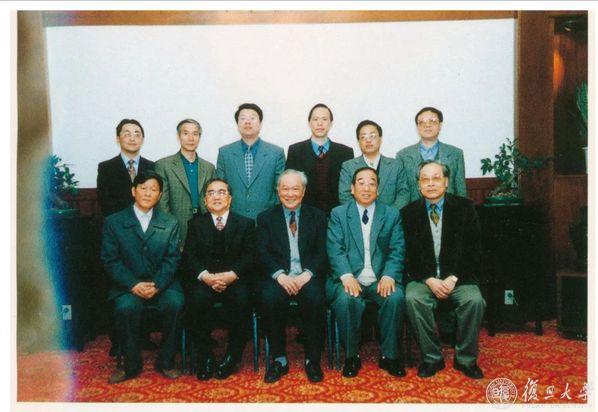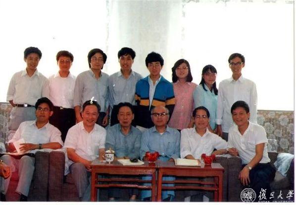 金冲及先生来复旦大学参加历史系研究生答辩后合影。前排左起:姜义华、金冲及、陈旭麓、陈绛、余子道、杨立强;后排左一胡礼忠