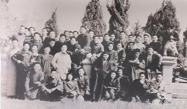 复旦地下党在一年级学生积极分子中组建外围组织——新生社。新生社成员后来半数以上参加了地下党。图为新生社成员1947年在上海郊区登山活动。二排左三为金冲及先生。