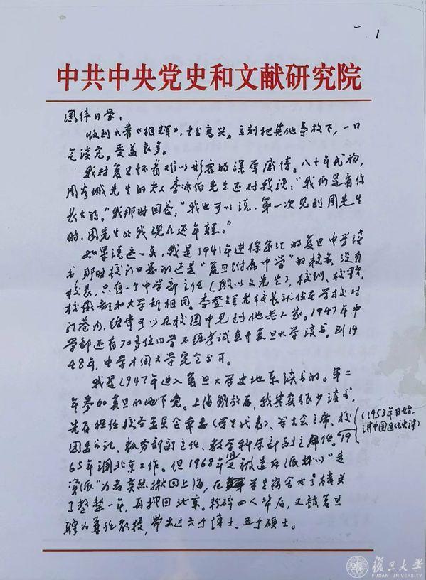 未料,金先生给张国伟回了一封长达六页的长信,一手蝇头小楷,清秀齐整,饱含对这个陌生晚辈的鼓励,也指出了书中一些可改进之处。从那以后,两位年龄相差30岁的复旦历史人,因对复旦的热爱再次建立联系。