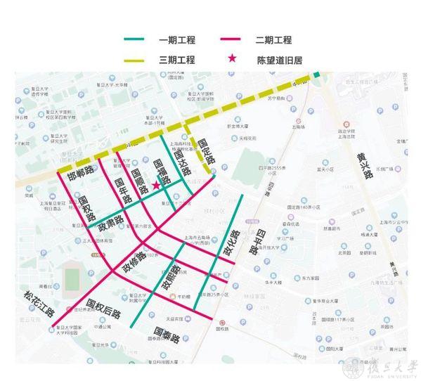 杨浦区复旦大学南片校区周边市政设施升级图,分三期三年,推进改造11条马路