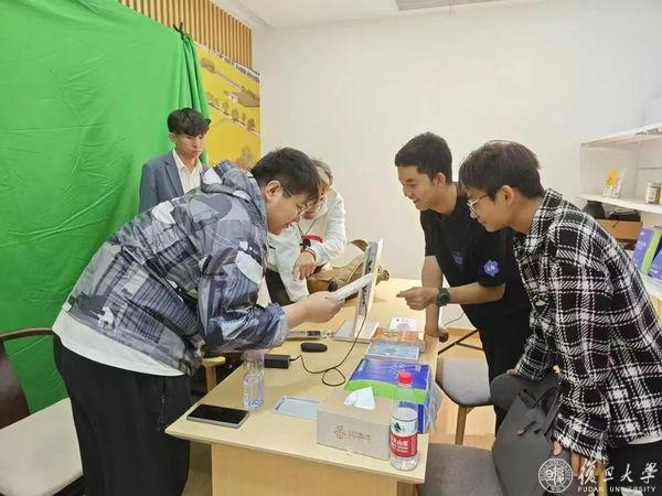 一间小房间,陈列着专业直播设备、绿幕与补光灯等设施,这是同学们第一次直播的场地。调试补光灯、智能机,摸索改变背景特效、人物颜色等新奇有趣的功能。之后,大家抓紧时间讨论直播的形式和文字,学习各大平台直播带货模式,完善直播计划。“乡村直播电商策略研究”项目调研课堂有些特别。