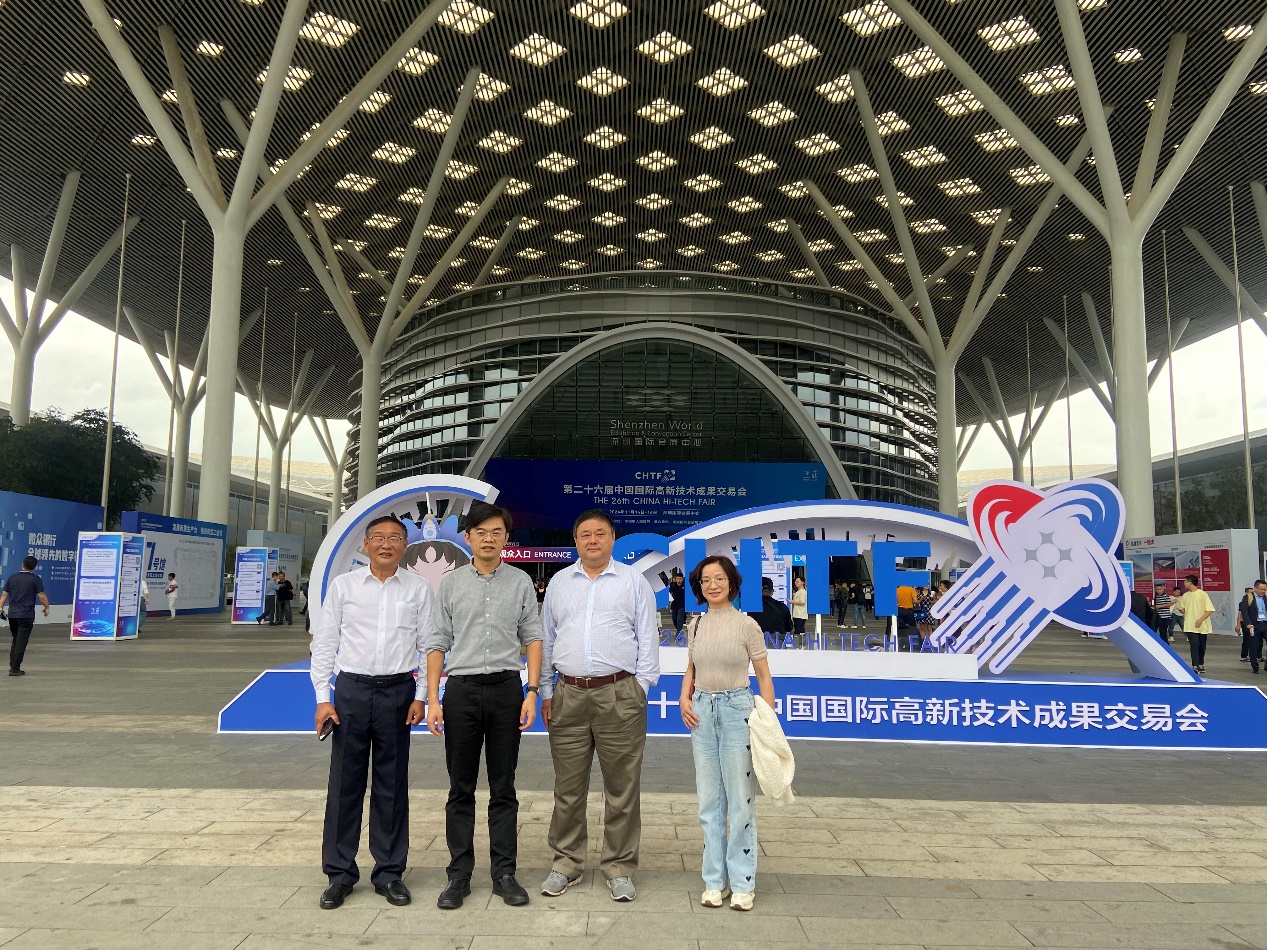 在院长蔡启良教授的带领下,启东复旦医学创研究院参加高交会,并对复旦的展出项目表示较强兴趣。值得一提的是,副院长于敏的两项成果均在高交会上获奖,其一同参加高交会并留影。