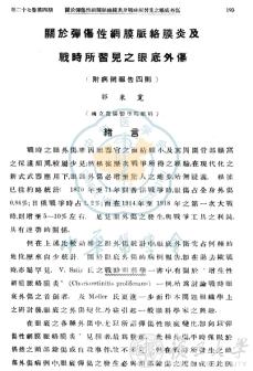 郭秉宽的论文,左图为《关于弹伤性网膜脉络膜炎及战时所习见之眼底外伤》(《中华医学杂志》1941年27卷04期),右图为《一个尚未解决的角膜移植问题》(《中华医学杂志》1948年34卷01期)