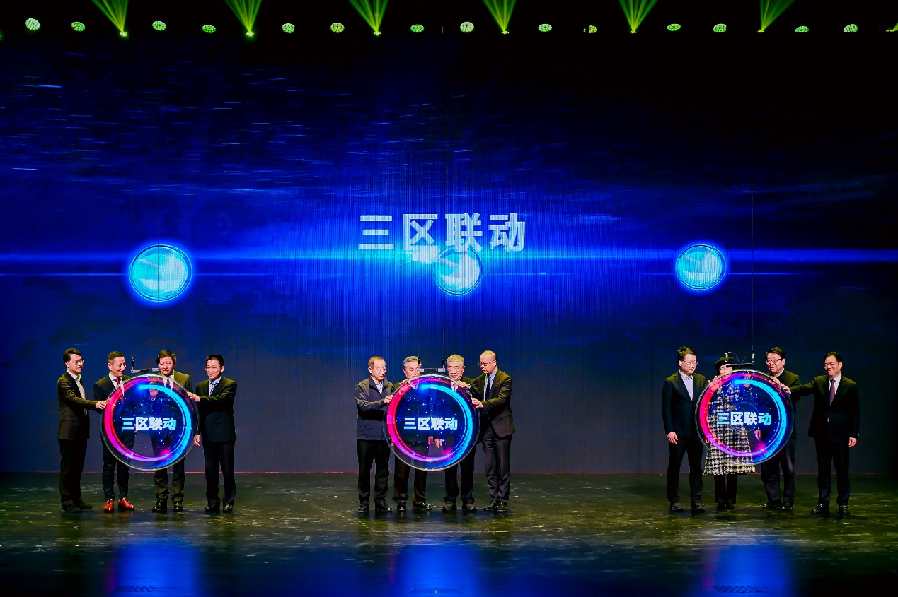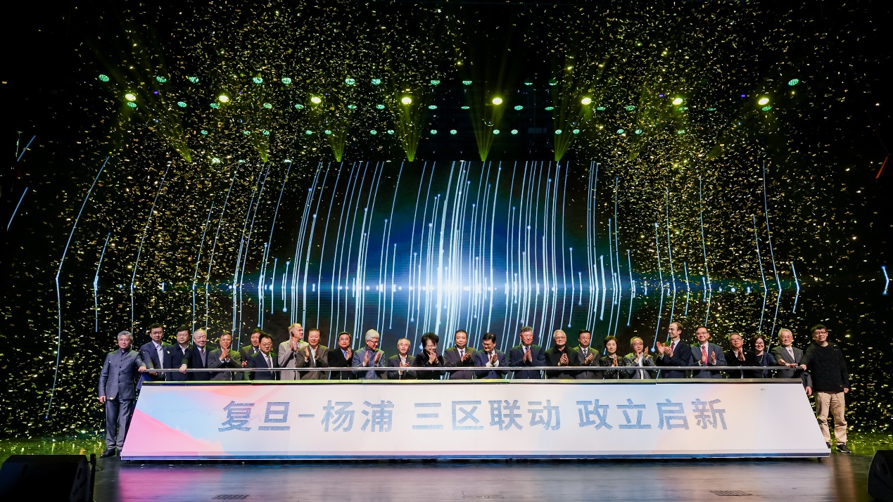 杨浦区区长周海鹰,中国福利会副主席、党组书记、秘书长张晓敏,上海市医疗保障局党委书记、局长夏科家,杨浦区常务副区长尼冰,杨浦区副区长徐建华,复旦大学副校长陈志敏,复旦大学原副校长、东华大学原校长徐明稚,复旦大学原常务副校长张一华,复旦大学原常务副校长陈晓漫,杨浦区科创集团党委书记、董事长郑岳肖,瑞安房地产行政总裁王颖,浙江舜杰建筑集团股份有限公司副董事长陈坤校共同点亮“三区联动同心圆”。