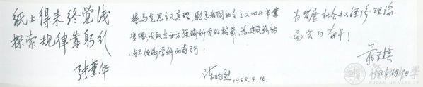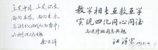 余开祥、江泽宏、张薰华、陈观烈、蒋学模为第一届世界经济教师进修班题词