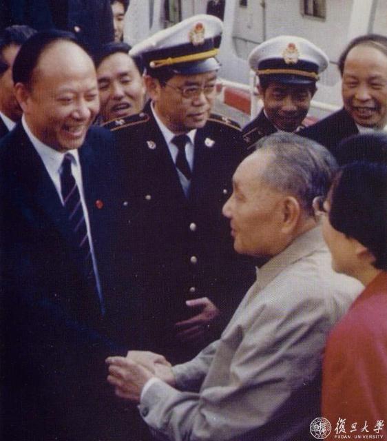 邓小平同志南巡时与原世经所教师、时任深圳市长郑良玉握手
