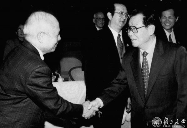 时任全国政协主席李瑞环与时任全国政协常委、原世经所所长郑励志握手