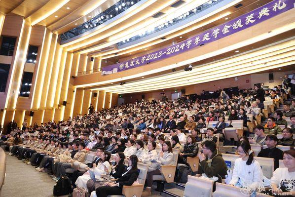 12月10日下午,“卓越光华,创启新章”复旦大学2023-2024学年奖学金颁奖典礼在相辉堂举行。本年度,学校获得各级各类奖学金的学生达25696人次,校外单位在复旦设立冠名奖学金35项,奖励来自全校各院系的优秀学生938人。