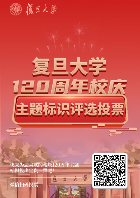复旦大学120周年校庆主题标识评选投票系统12月12日上线eHall系统。登录https://ehall.fudan.edu.cn/或登录“复旦eHall”微信小程序,点击进入“复旦大学120周年校庆主题标识评选投票”评选模块,扫描下方二维码亦可直接投票。