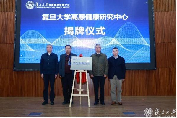 在全体与会人员的见证下,金力、陈睦、胡鸿毅、熊英共同为“复旦大学高原健康研究中心”揭牌,据悉中心由金力任首席科学家,复旦大学生命科学学院教授王久存任中心主任,季维智受聘中心学术委员会主任。