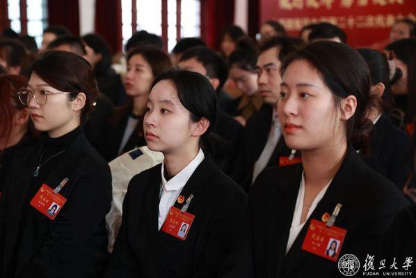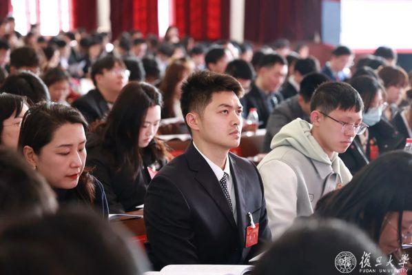 在庄严的国歌声中,共青团复旦大学第二十二次代表大会开幕。复旦大学第二附属学校少先队员代表上台献词。大会听取了由团委书记潘孝楠代表共青团复旦大学第二十一届委员会所做的题为《敢打头阵 勇当尖兵 培养中国式现代化建设的坚定行动派实干家 为谱写中国特色世界一流大学高质量发展新篇章贡献青春力量》的报告。报告指出,中国共产主义青年团复旦大学第二十二次代表大会,是在以中国式现代化全面推进强国建设、民族复兴伟业的关键时期,学校即将迎来120周年校庆的重大时刻,全校上下向着中国特色世界一流大学前列砥砺前行之际召开的一次青春盛会。