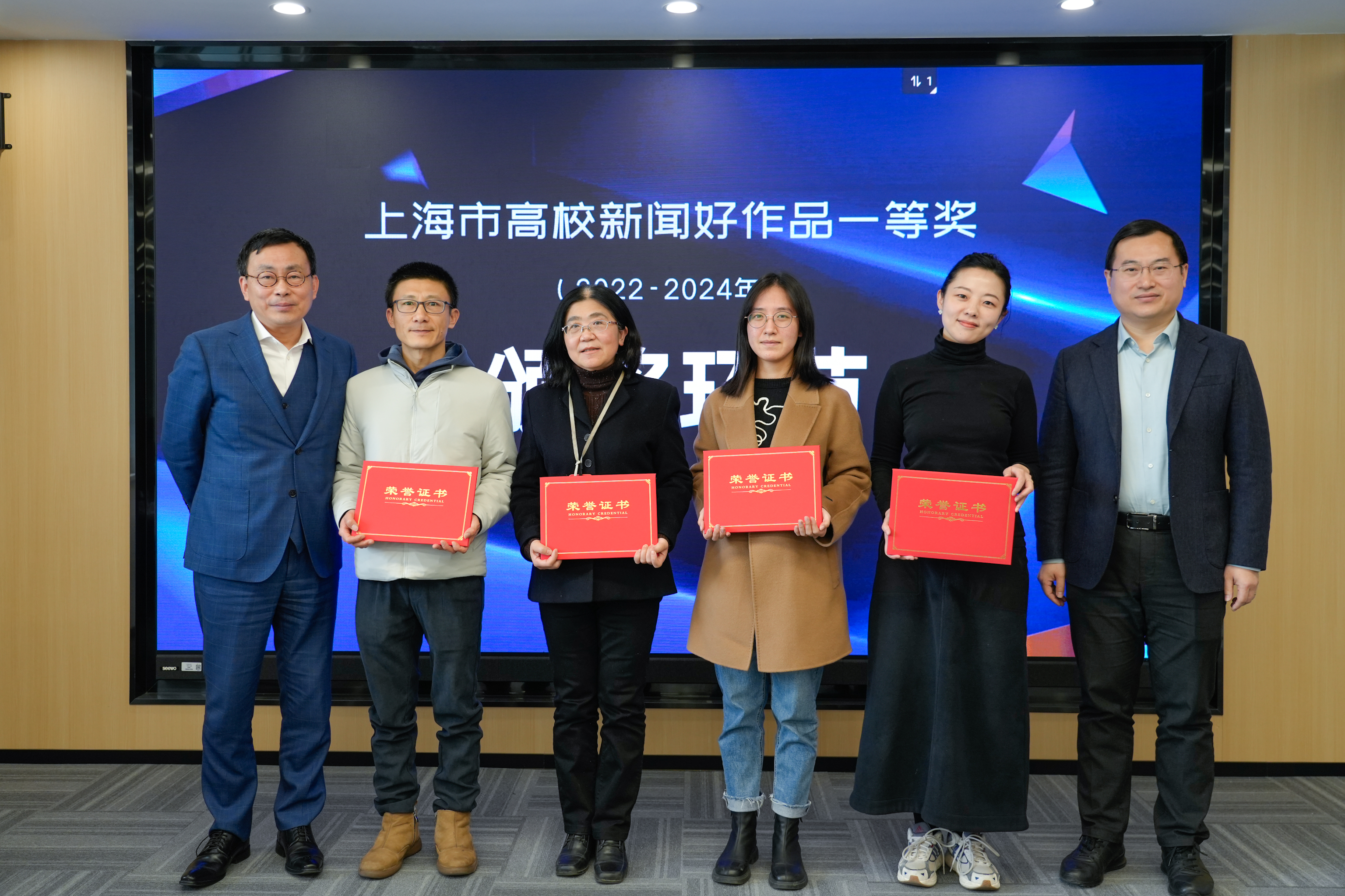 解放日报社党委副书记丁利民,上海新华书店党委书记、董事长、上海报业传媒行业协会副会长钮也仿,上海市委宣传部、上海市教卫委宣传处代表为26所高校代表颁发好作品证书。(全名单见文末)