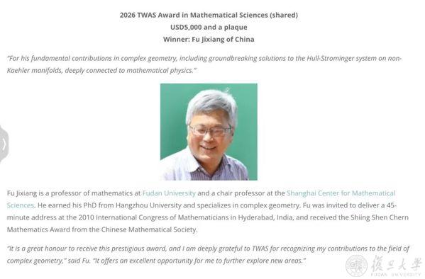 去年11月,傅吉祥荣获发展中国家科学院(TWAS)数学奖,成为该奖项设立以来中国大陆地区第9位获此殊荣的数学家。