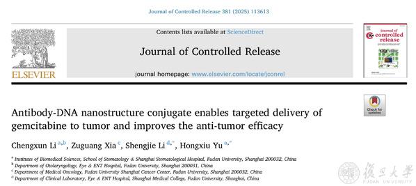 生物医学研究院、复旦大学附属口腔医院和附属眼耳鼻喉科医院余红秀、李圣杰团队开发抗体-DNA纳米结构偶联物实现吉西他滨靶向递送并增强抗肿瘤疗效