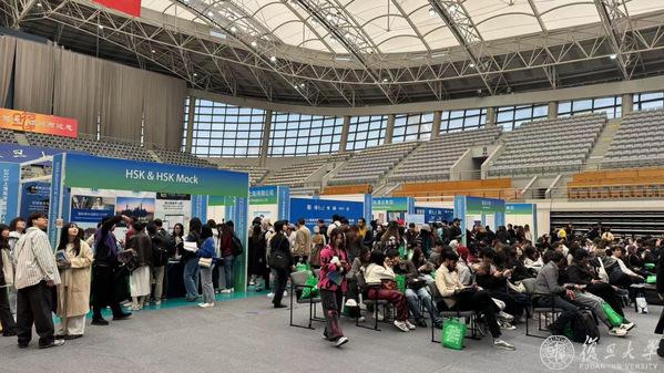 上午9点起,正大体育馆前的国权路排起了长队,来自世界各地的在华留学生、归国中文教师和志愿者怀揣着对在华留学、就业以及中国出海企业求职的期待,早早来到门口等候入场。展会由复旦大学、汉考国际联合主办,复旦大学外国留学生工作处、复旦大学国际文化交流学院、复旦-汉考创新研究基地共同承办。
