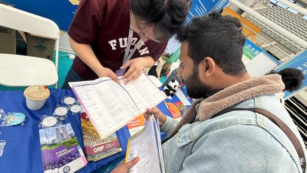 “早上已经回办公室补充了一次宣介材料,估计下午还得再补一次。”复旦大学外国留学生工作处的老师表示,与线上渠道相比,现场面对面沟通效率更高信息传递更为直观,后续有任何疑问同学们也可通过宣传材料上的联系方式进一步咨询。恰逢复旦大学建校120周年,本次展会也是学校服务上海建设具有全球影响力的社会主义现代化国际大都市的实践。