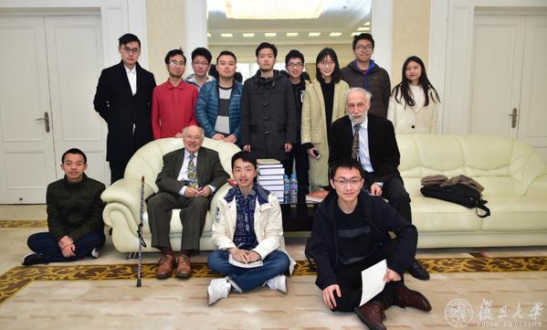 学生和菲尔兹奖获得者 Michael Atiyah、Alain Connes 近距离交流