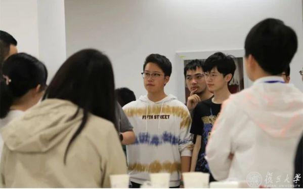 “谈家桢”班学生通过“炉边夜话”活动与大师对话,何远隆(第二排右三)就曾与细胞程序性死亡领域开拓者、复旦大学1982届校友袁钧瑛研究员交流科学生涯规划