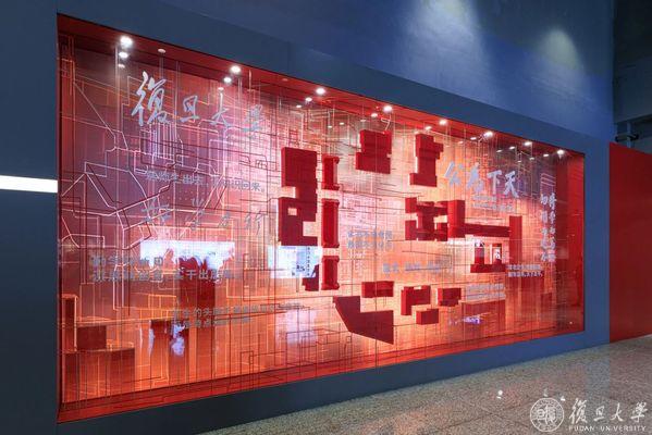 文化体验中心包含三大功能区,主题灯箱以图文形式展示复旦特色校园、学术、科创文化文创橱窗,陈列来自院系、附属医院、学科产业的最新文创作品,互动点不定期推出青年文化快闪活动。