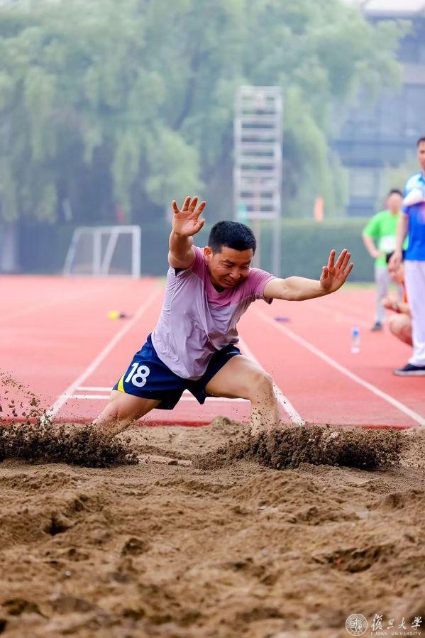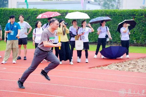 除了同学们挥洒汗水的角逐,还有教职工激情拼搏的身影。