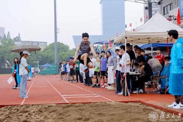 微风细雨中,今天一早,复旦大学第六十三届田径运动会暨复旦大学第十八届教工运动会在南区田径场开幕。
