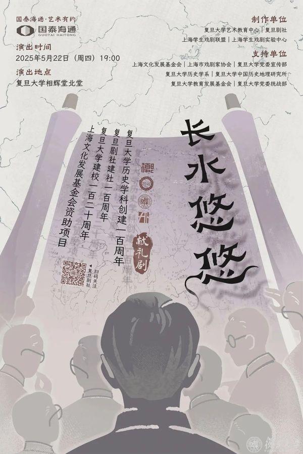 近几个月来,复旦剧社为原创大戏《长水悠悠》紧锣密鼓地排练。剧目聚焦复旦著名历史学者、中国历史地理学科奠基人谭其骧先生。“历史是戏剧,地理是舞台”,是谭其骧生前的名言,也成为剧作灵感的源泉。