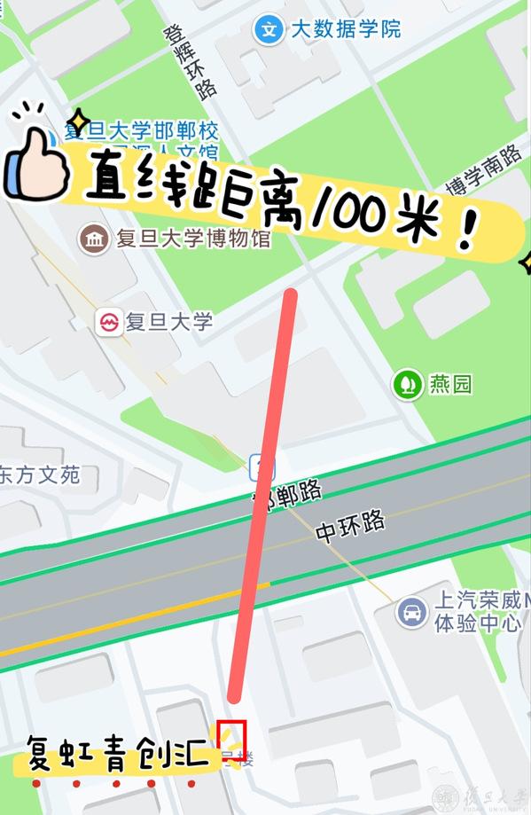 “复虹青创汇”科创孵化空间位于邯郸路173号优族园区1号楼,与邯郸校区直线距离仅100米,占地达1000平方米。