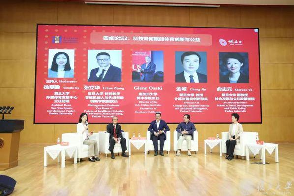 活动最后,“复旦体育,加油!”。南加大15名师生与全场复旦学子齐声呐喊,笑容绽放。