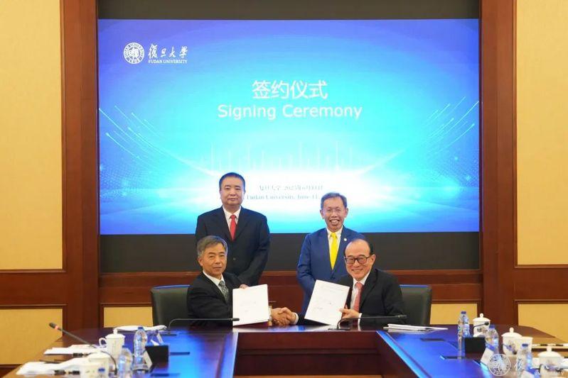 在沈桂贤与金力的共同见证下,复旦大学副校长马余刚与美砂集团(Imasa Dinasti Sdn. Bhd.)董事长张祖德代表双方签署共建“中西医结合创新药物研发校企联合研究中心”合作协议。