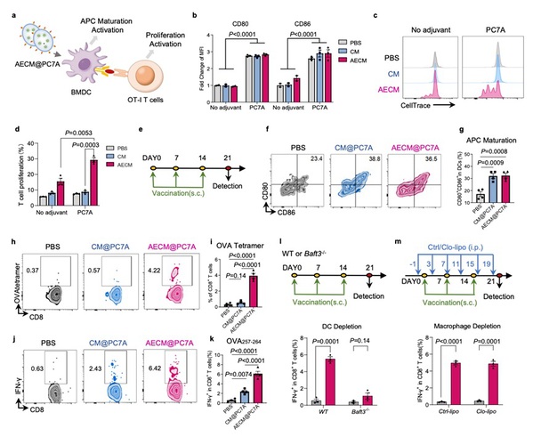 AECM@PC7A在体外和体内刺激APC成熟和T细胞启动