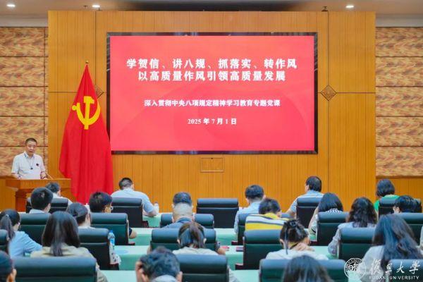 7月1日,在中国共产党成立104周年这个具有特殊意义的日子里,校长、中国科学院院士金力围绕“学贺信、讲八规、抓落实、转作风,以高质量作风引领高质量发展”为分管部门讲授深入贯彻中央八项规定精神学习教育专题党课。通过深入学习贯彻落实习近平总书记重要贺信精神,深刻领会中央八项规定的精神实质和核心要义,引导学校各部门进一步统一思想,凝聚力量,为学校各项事业的高质量发展提供坚强保障。