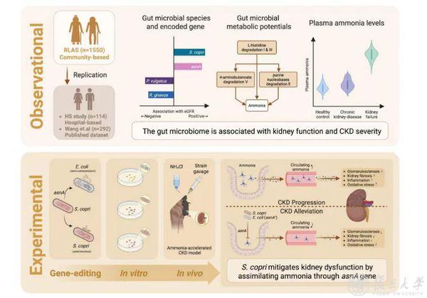 2. 生命科学学院郑琰/李潇/王笑峰团队以及附属华山医院陈靖合作揭示Segatella copri及肠菌氨代谢调控慢性肾脏病进程的潜在机制