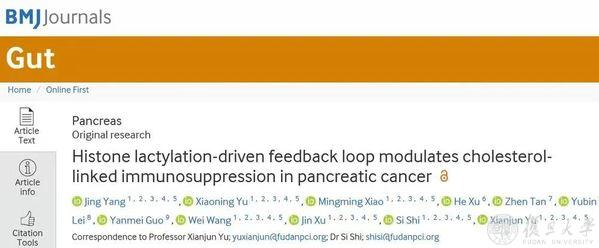 6. 复旦大学附属肿瘤医院虞先濬教授、施思教授团队发现“代谢废物”有望成破解“癌王”免疫治疗难题新路径