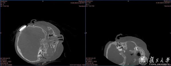 手术台上,主刀医生像完成精密工作的“管道工”,在小宇左侧采用耳后微创入路,保留重要骨性结构,用自体肌瓣充当“防水补丁”堵住风险区,防范脑脊液漏并成功植入电极,诱发出神经反应;右侧则创新采用水平半规管“借道”,以非标准角度精准植入电极。3个多小时里,O臂机如同“实时地图”,让每一步操作都清晰可见,为这例高难度人工耳蜗植入手术保驾护航。
