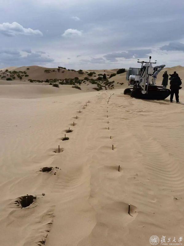 北纬40°,鄂尔多斯市达拉特旗沙漠,一场由机器人引领的“治沙革命”正悄然兴起。2023年10月,复旦大学智能机器人研究院联合内蒙古企业,成立“绿色生态智慧科技校企联合研究中心”,所研发的首台荒漠种植机器人,仅需50秒即可完成“选址—打坑—播种—浇水—覆土—压实”全流程作业。